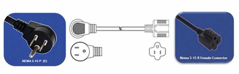 NEMA 5-15 P Left Angle Tri NEMA 5-15 R