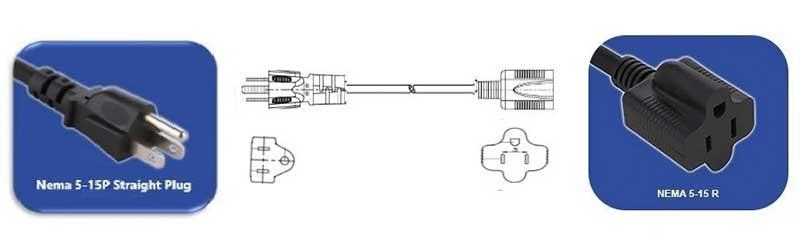 NEMA 5-15 P Left Angle NEMA 5-15 R
